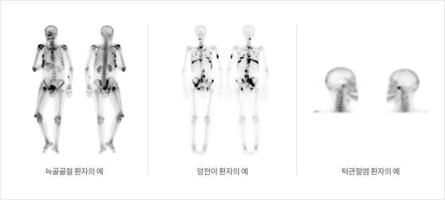 뼈의 대사를 반영하는 방사성의약품을 투여하여 골절이나 암의 전이, 감염 및 관절 질환을 평가하는 검사입니다.