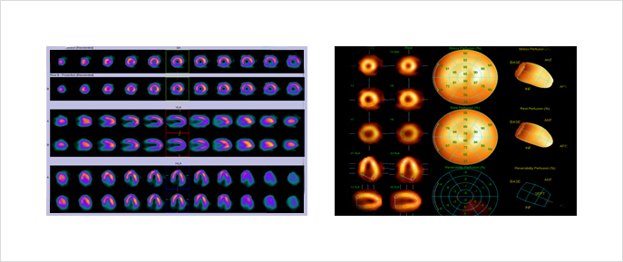 심장근육의 혈액공급 상태를 3차원 영상으로 관찰하여 관상동맥 질환의 심한 정도를 정확하게 평가할 수 있는 검사입니다. 약물로 심장에 스트레스를 준 부하기 영상과 휴식기 영상을 비교하여 진단합니다.