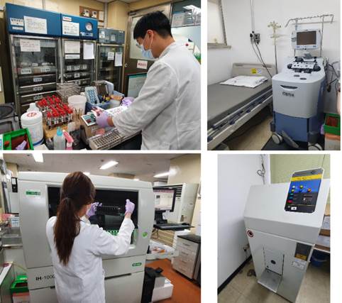 환자들에 안전한 수혈을 위해 각종 수혈학적 검사를 수행하여 적합한 혈액제제를 공급하고 있습니다. 또한, 성분 채집 및 치료적 혈장교환술을 수행하며, 헌혈, 자가 수혈 등의 업무도 수행하고 있습니다.