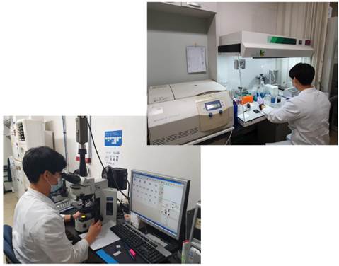 혈액이나 산모의 양수 등을 이용한 염색체 검사로 선천적 이상을 진단하고 골수나 혈액으로 기본적인 염색체 검사와 FISH 등을 이용하여 각종 혈액 및 고혈 악성 종양의 진단에 이용하고 있습니다.