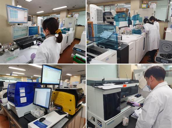 환자에게서 채취된 혈액과 소변 등의 체액에 존재하는 다양한 임상화학적 검사 지표들을 측정하여 질병의 진단과 치료 방침 설정에 도움을 주는 검사를 시행하는 곳으로 아래와 같은 검사들을 실시하고 있습니다.