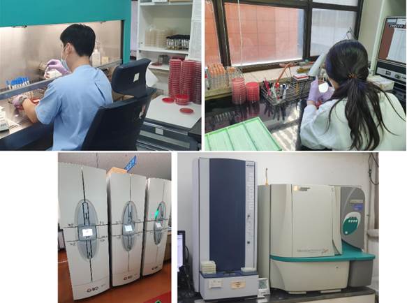 환자로부터 채취된 검체를 바탕으로 감염병의 원인균에 대해서 배양 및 동정을 시행하고 동정된 균에 대한 항균제 감수성 검사를 시행하고 있습니다.